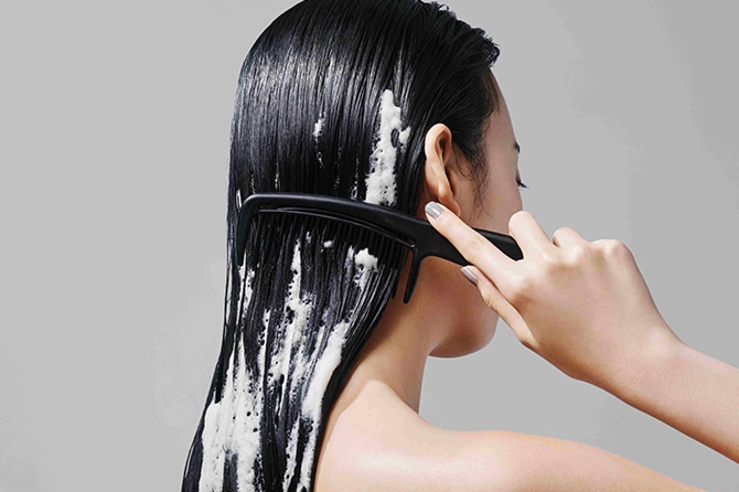 - シャンプー後、髪の水気を切り、スペシャライズド コームで髪をとかす